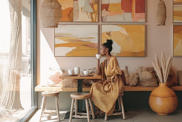 Cloud Dancer burada “sakinleştiren” değil, dengeleyen bir beyaz rolünde. Renkleri taşır ama bastırmaz. Yüksek enerjili, tropikal renklerle çalışırken en büyük risk görsel kaos yaratmaktır. Cloud Dancer bu noktada renkleri düzenleyen bir sahne arkası gibi çalışır.