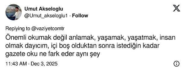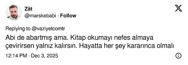 Senelerdir günde 15 saat kitap okuduğunu, sadece yemek yiyerek, uyuyarak ve kitap okuyarak yaşadığını söyleyen Karataş, kitap okumanın kendisini asosyal yaptığını, bu yüzden ailesinin ve arkadaşlarının onu terk ettiğini söyledi. Kendisine alzheimer teşhisi konduğunu söyleyen Karataş 'Kitap okumak cahilliktir' dedi. Elbette isyanının ironi olduğunu belirtti fakat o isyanına pek çok yorum geldi.