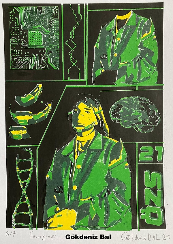 Çocukken kireç harcına bir nesneyi bastırdığımda hissettiğim o direnç ve çıkan sonucun kalıcılığı, aslında benim için sanatın 'oyun' olmaktan çıkıp bir 'kayıt altına alma' dürtüsüne dönüştüğü ilk andı. Bu deneyim bana, yüzeyin pasif bir taşıyıcı olmadığını, aksine müdahale edilmesi gereken bir 'hafıza' olduğunu öğretti. Geleneksel teknikler arasında bu merakımı en çok besleyen yöntem çukur baskı (gravür) oldu. Çünkü tıpkı o çocukluk oyunumdaki gibi; metal plakaya fiziksel bir güçle veya asidin kimyasal aşındırmasıyla müdahale edip, yüzeyin çukur olan kısımlarında bir iz bırakıyorsunuz. Ama şu anda en sevdiğim baskı türü serigrafi baskısıdır çünkü daha modern ve dijital uygulamalardan yararlanabiliyoruz bu da beni geleneksel yöntemi çağdaş yöntemler ile birleştirme hissi veriyor.