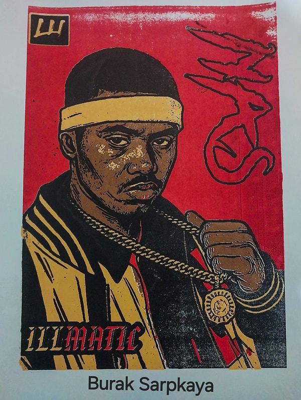Ardından kendi tarzımdaki yazı fontlarını ekleyerek, Çizgi Roman veya dergi kapağı gibi hâle getirip, Adobe İllüstratör uygulamasından renk tonlarını düşürüyor ve Serigrafi baskı alabilecek şekilde düzenliyorum. Tabii ki tasarıma logomu eklemeyi ihmal etmiyorum. Son olarak baskısını alıyorum.