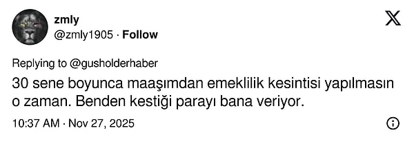 Tüm bu tartışmaların ardından bir vatandaş, emeklilik ile ilgili fikrini paylaştı. Elbette o fikir sosyal medyada yeni bir tartışmanın fitilini ateşledi.