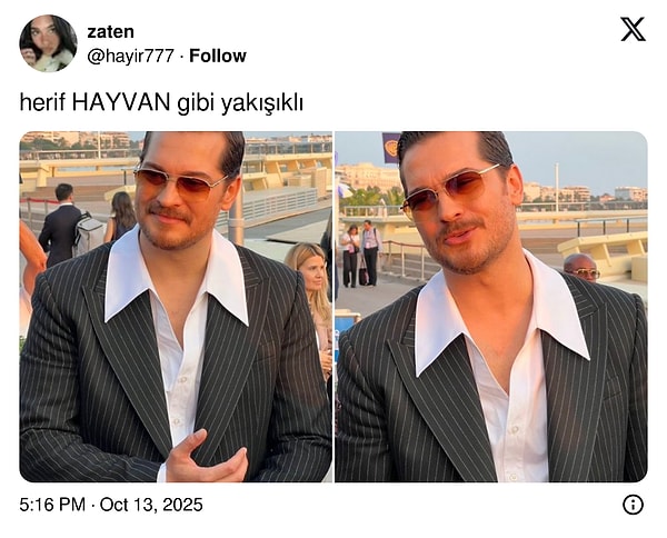Başrol oyuncusu Çağatay Ulusoy, Eşref Tek karakterinin karizmasını kırmızı halıya taşıdı. Yakışıklılığı ve duruşuyla tüm bakışları toplayan Ulusoy klasik tarzı ve arabasıyla dikkatleri üzerine çekti. Bugün Cannes sokaklarında görüntülenen isim karizmasıyla X kullanıcılarından büyük ilgi gördü.