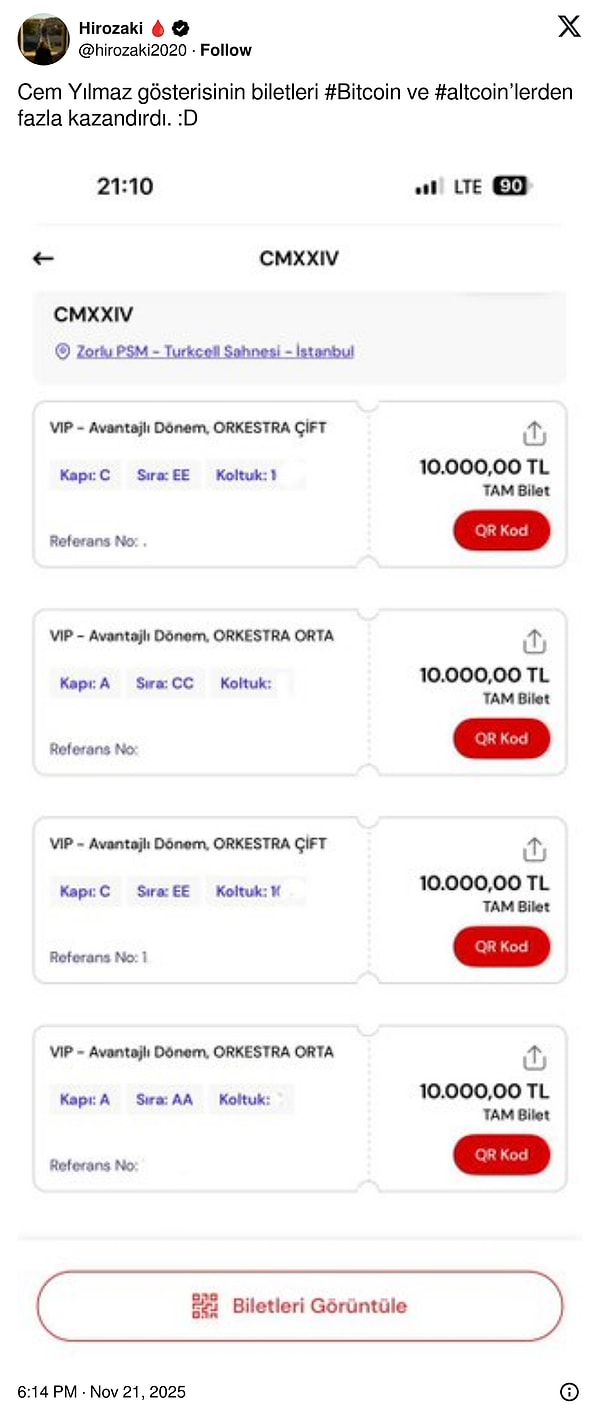 Cem Yılmaz, yıllardır stand-up sahnesinde salonları dolduran ve her yeni gösterisi merakla beklenen bir isim. Zorlu PSM’de sahnelenecek yeni oyunu CMXXIV için duyuru yapılır yapılmaz fiyatları dolayısıyla biletler anında tükendi. 23 Kasım tarihli gösterinin biletlerinin kısa sürede tükenmesinin ardından ikinci el satışlardaki fahiş rakamlar gündem oldu.