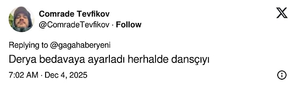 Ünlü şarkıcı Derya Bedavacı'nın konserindeki ilginç anlar sosyal medyanın gündemine oturdu. Bedavacı'nın arkasındaki dansçının şarkıyla tamamen alakasız abartılı koreografisi kullanıcıların diline fena düştü!