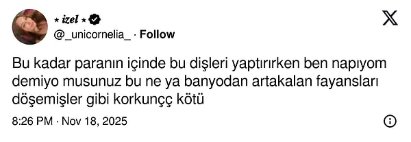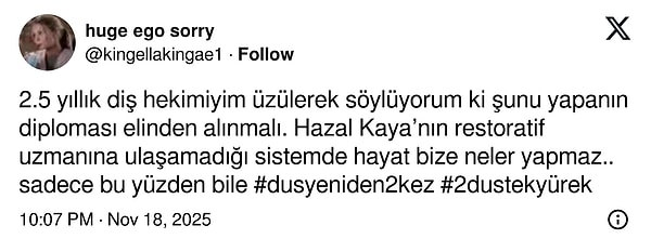 Gelin, önce verdiği son röportaj sonrası X'te yeni dişleriyle konuşulmaya başlanan Hazal Kaya'ya gelen yorumlara birlikte bakalım.