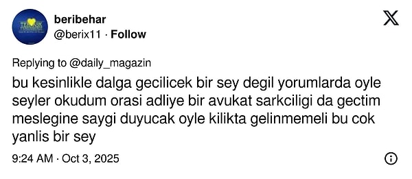 Birçok kişinin şarkıcı kimliğiyle tanıdığı Ebru Polat’ın aslında avukatlık kimliği de var. Geçtiğimiz yıl da radikal bir kararla mesleğine geri dönüp cübbesini yeniden giymişti. Son olarak adliyede görüntülenen Polat, topuklu ayakkabısı, eşofmana benzer takımı ve avukatlık cübbesiyle dikkat çekti. O anları videoya alıp Instagram hesabında paylaşan ünlü isme sosyal medyadan tepki yağdı.