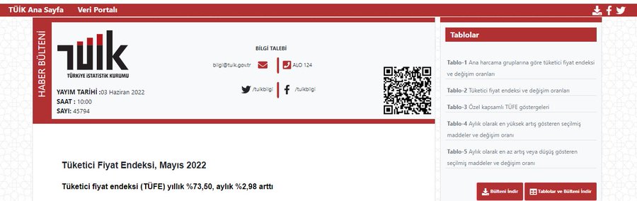 BloombergHT haberine göre, TÜİK enflasyon verilerinde madde sepeti yayımını durdurdu.