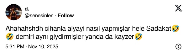 Popüler dizilerin sık sık parodilerini yapan Çok Güzel Hareketler ekibi bu kez ortaya öyle bir skeç çıkarmış ki fragmanı bile ortalığı yıktı geçti. Evliya Aykan'ın Sadakat rolüne büründüğü parodide her bir karakterle ilgili düşünülmüş detaylar sosyal medyanın gündemine oturdu.