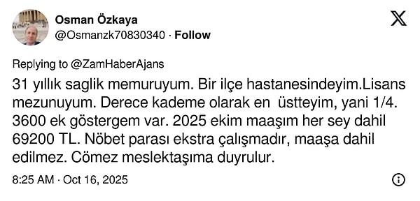 Hemşire, yaptığı paylaşımda yeni atanan bir sağlık çalışanının şehir hastanesinde ortalama 75-78 bin TL maaş aldığını, devlet hastanelerinde bu rakamın 73 bin TL civarında olduğunu söyledi. Görev yerlerine göre maaş farkı bulunduğunu vurgulayan paylaşım, kısa sürede tepkilerin odak noktası oldu.