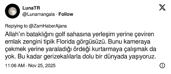 Bir kadın golf oynarken, atışını ördek sürüsünün olduğu göle doğru yaptı. Bu sırada bir ördek başından yaralandı. Can çekişen ördeğe yardım etmek yerine kayıt almaya devam ettikleri o anlar tepki topladı.