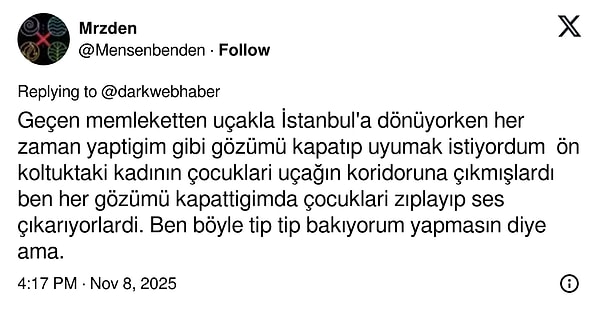 Bir genç, uçak yolculuğu sırasında bir çocuk tarafından rahatsız edildiği anları 'Hayatımın en kötü uçuşuydu' notuyla paylaştı. Sosyal medyada viral olan o videoya pek çok farklı yorum geldi.