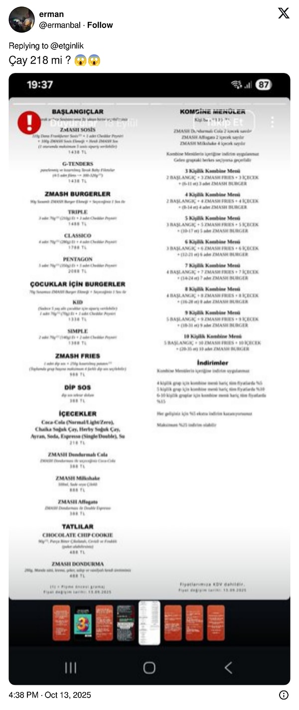 İstanbul'daki bir hamburgercinin çalışma şekli ve özellikle fiyat listesi sosyal medyada gündem oldu.