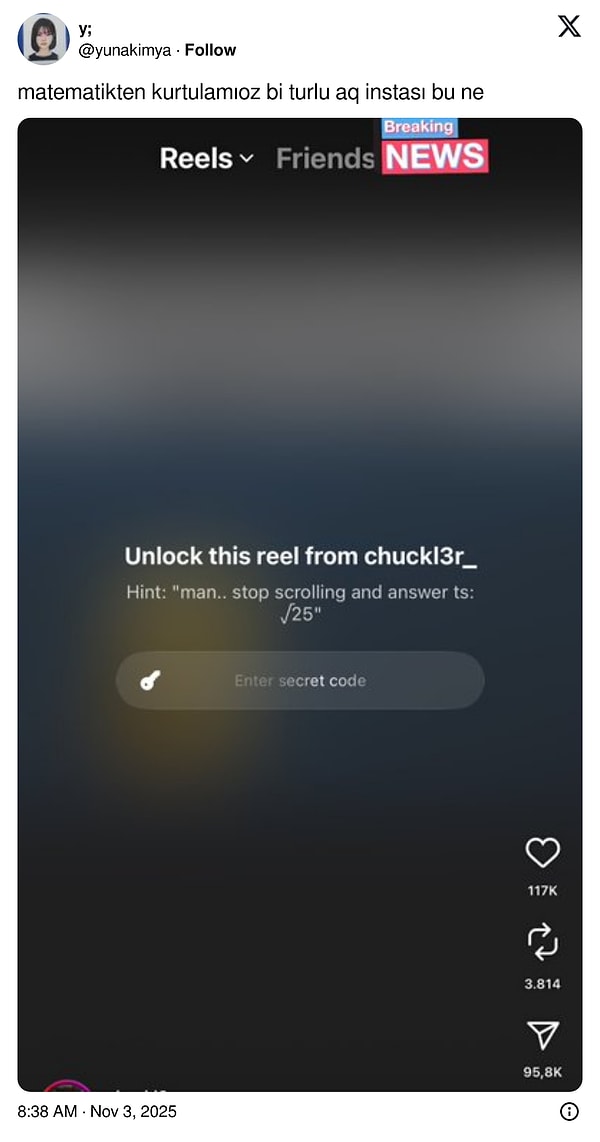 Bazı hesaplar bu Reels'leri matematik sorularıyla gizlemeyi tercih ediyor...