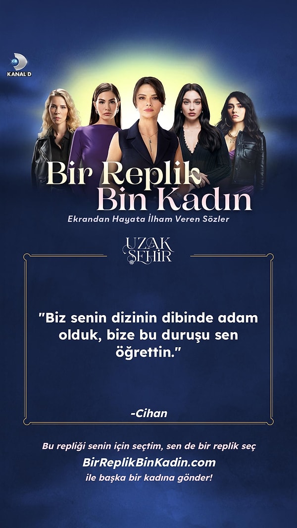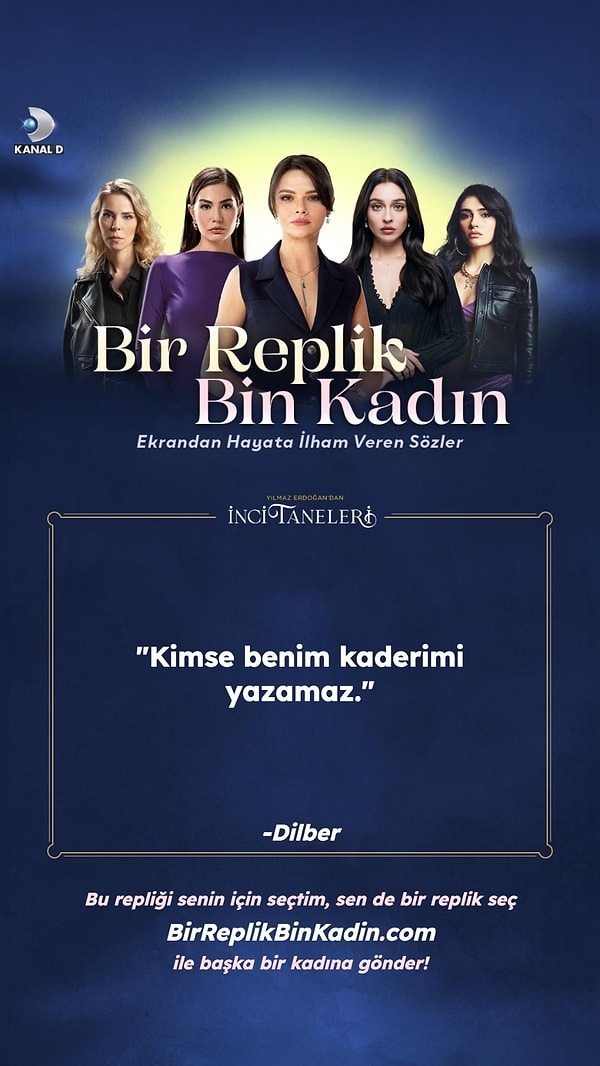 BirReplikBinKadin.com adresi üzerinden erişilebilen uygulama, Kanal D dizilerinin unutulmaz kadın karakterlerinin ilham veren repliklerini keşfetme ve bu sözleri hayatınızdaki güçlü kadınlarla paylaşma imkanı sağlıyor.