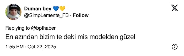 Kimi estetikli buldu, kimi duru bir güzelliğinin olmadığını öne sürdü. Ancak konu, sosyal medyada dönüp dolaşıp yine bir şekilde Türkiye’ye geldi. Hatırlarsanız İdil Bilgen Miss Turkey 2024 birincisi seçilmişti. Güzelliği çok tartışılmış, özellikle de 'Şabaniye' benzetmesiyle akıllarda kalmıştı. Bilgen hemen sonrasında Hindistan'da düzenlenen Miss World'de ülkemizi temsil etmiş, ancak dereceye girememişti.