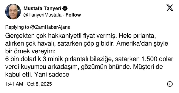 Bir adam, bozulan nişanının ardından nişan için aldığı 600 bin TL'lik takıyı bozdurmak istedi. Fakat kuyumcunun verdiği fiyat karşısında şok yaşadı.