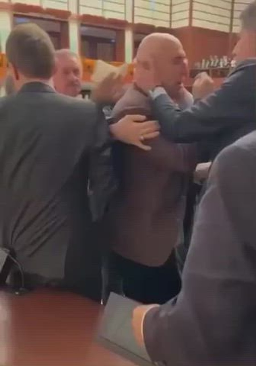 Adalet Bakanlığı’nı devralan Akın Gürlek’in TBMM’deki yemin töreni sırasında ortalık karıştı. CHP’li vekiller Gürlek’in kürsüye çıkmasını protesto ederken tansiyon yükseldi. Yumrukların havada uçuştuğu anlarda büyük arbede yaşandı. CHP Milletvekili Mahmut Tanal, kavga sırasında AKP’li Osman Gökçek’in yumruk atması sonucu yaralandı. O anlar kameralara yansıdı.