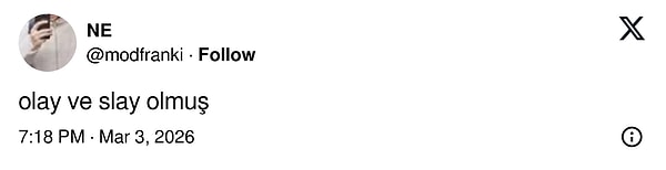 Siyah yüksek bel deri pantolonunu, derin dekolteli ve önden bağlamalı beyaz gömlekle kombinleyen oyuncu, oversize güneş gözlüğü ve iddialı küpeleriyle modern, güçlü ve son derece özgüvenli bir siluet çizdi. Moda haftasına adeta Serenay imzası bıraktı.