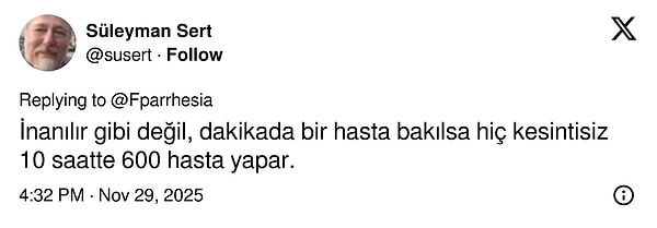 Sağlık Bakanı Kemal Memişoğlu geçtiğimiz günlerde, sağlık hizmetlerinde dünyanın en iyisi olduğumuzu, Avrupa'nın bazı ülkelerinde insanların ameliyat olmak ya da doktora muayene olmak için 1 sene beklediğini söylemişti. Bunun üzerine doktorlarımızın bir günde baktıkları hasta sayısı gündeme geldi.