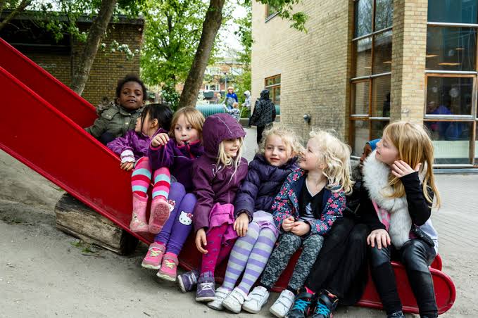 Burada doğum izni 9 aydır ve bir yıla kadar uzatılabilir. Sonrasında çocuklar ana sınıflarına verilirler. İlk haftada ise ebeveynlerden biri (mümkünse ikisi) bebekle beraber ana sınıfına gelir ve bebeği kısa bir süre için bırakır. Zamanla bu süre uzatılır. Bu alışma süreci stresli değildir ve uzmanlar anne ve babalara çocuklarına doğru şekilde veda etmeyi öğretirler ki onları özlemesinler.