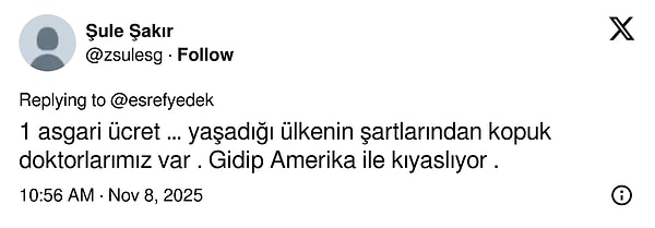 Yorum yapan kişi, '21 Bin TL seans ücreti olan ve realite den uzak bir fiyatlandırma sistemi var. Los Angeles’da 200-350 USD arasında (anlık usd kuru ile 8 bin tl ile 14 bin tl arasında) fiyatlar varken bu rakamlar üzücü.' derken psikiyatr da 'Verdiğiniz fiyatlar gerçeği tam olarak yansıtmıyor. Los Angeles’taki 60 dakikalık ortalama ilk değerlendirme seans ücretleri $450-$790 aralığındadır.' diye cevap verdi.