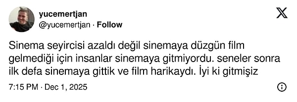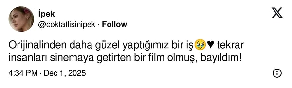 Çok uzun bir aradan sonra ilk kez bir film Türkiye'de bu kadar rağbet görürken, filmi yaklaşık iki haftada toplam 1 milyon 399 bin seyirciye ulaştı!