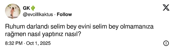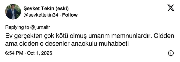 Eser Yenenler ve Berfu Yenenler çifti, 'sade' bir tasarımla yeniden dekore ettikleri evlerini takipçileriyle paylaştı. Ancak evin tasarımı sosyal medyada mimar Selim Bey’in travmatik tasarımlarına benzetildi. Paylaşımı kısa sürede yorum yağdı, birçok kullanıcı evin dekorasyonunu başarısız buldu. Daha önce programda yaptıkları açıklamalarla gündem olan çift bu kez evleriyle sosyal medya kullanıcılarının diline düştü.