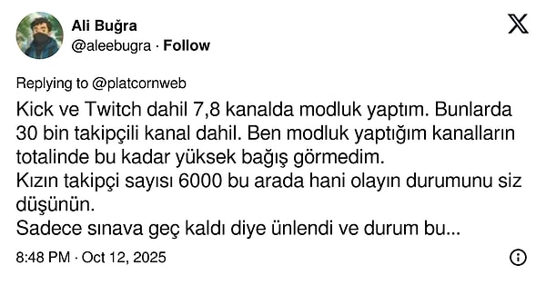 YKS'yi 1 dakikayla kaçıran Elif K. sosyal medyada verdiği cevaplarla çok konuşulmuştu. 'Taksi bulamadığım için geç kaldım. Kimliğim, belgem her şeyim yanımdaydı. Seneye tekrar gireceğim' sözleri ile gündem olan Elif K. bu kez de yayınında aldığı bağışlarla gündem oldu. 'rul3k2' ismi ile yayın yapan Elif K. bir yayında 61.000 TL bağış aldı.